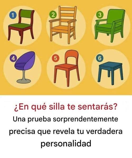 Ante seis sillas completamente diferentes en fila, ¿cuál elegirías al instante? No lo dudes: simplemente confía en tu instinto. Este rápido juego visual, divertido y a la vez reflexivo, podría enseñarte más sobre ti mismo de lo que imaginas. Pero cuidado, las apariencias a veces engañan…
