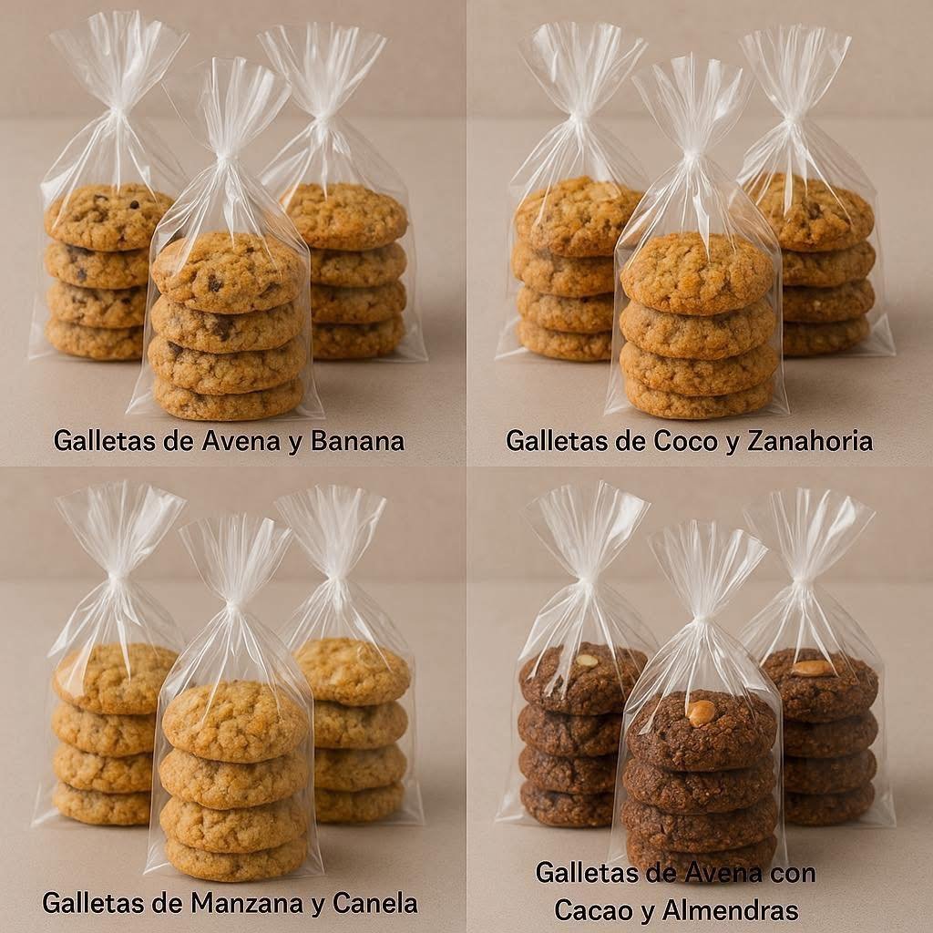 4 recetas de galletas saludables, ideales para snacks, venta o disfrutar sin culpa. Todas son horneadas, fáciles de preparar y con ingredientes más nutritivos: