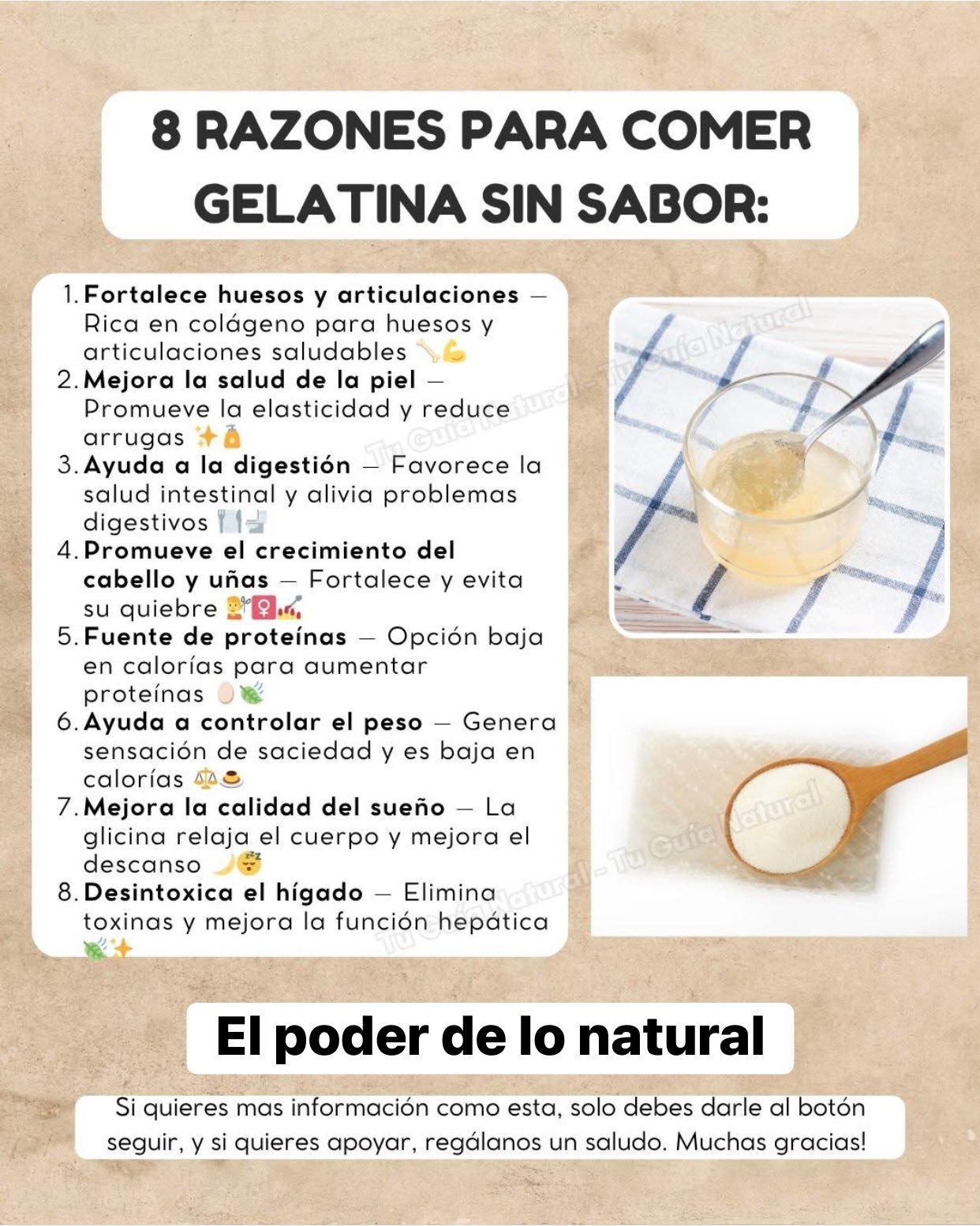 La gelatina sin sabor es mucho más que un simple ingrediente para postres; es un superalimento natural que puede aportar grandes beneficios a tu salud. ¿Quieres saber por qué deberías incluirla en tu dieta? Aquí te dejo 8 razones poderosas.