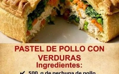 PASTEL DE POLLO CON VERDURAS Ingredientes: Para el relleno: 500 g de pechuga de pollo cocida y desmenuzada (puedes usar…