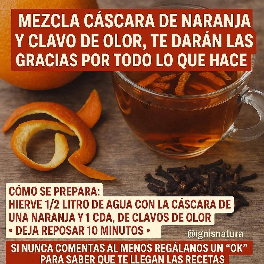 Las cáscaras de naranja están repletas de vitamina C, un nutriente esencial que fortalece nuestro sistema inmunológico. Cuando se combinan con los clavos de olor, conocidos por sus propiedades antibacterianas y antivirales, esta mezcla se convierte en un escudo natural contra resfriados y gripe.