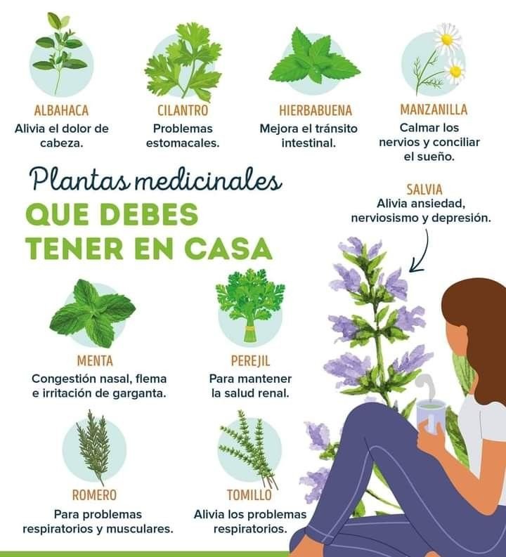 Albahaca : Ideal para aliviar el dolor de cabeza. Cilantro : Perfecto para combatir problemas estomacales. Hierbabuena : Mejora el tránsito intestinal y es una delicia en infusiones. Manzanilla : Calma los nervios y es tu aliada para un sueño reparador. Salvia : Tu planta contra la ansiedad, el nerviosismo y la depresión. Menta : Despeja la congestión nasal y alivia la irritación de garganta. Perejil : Mantén tu salud renal con esta planta versátil. Romero : Excelente para problemas respiratorios y musculares. Tomillo : Alivia los problemas respiratorios y es un gran aliado en la cocina.