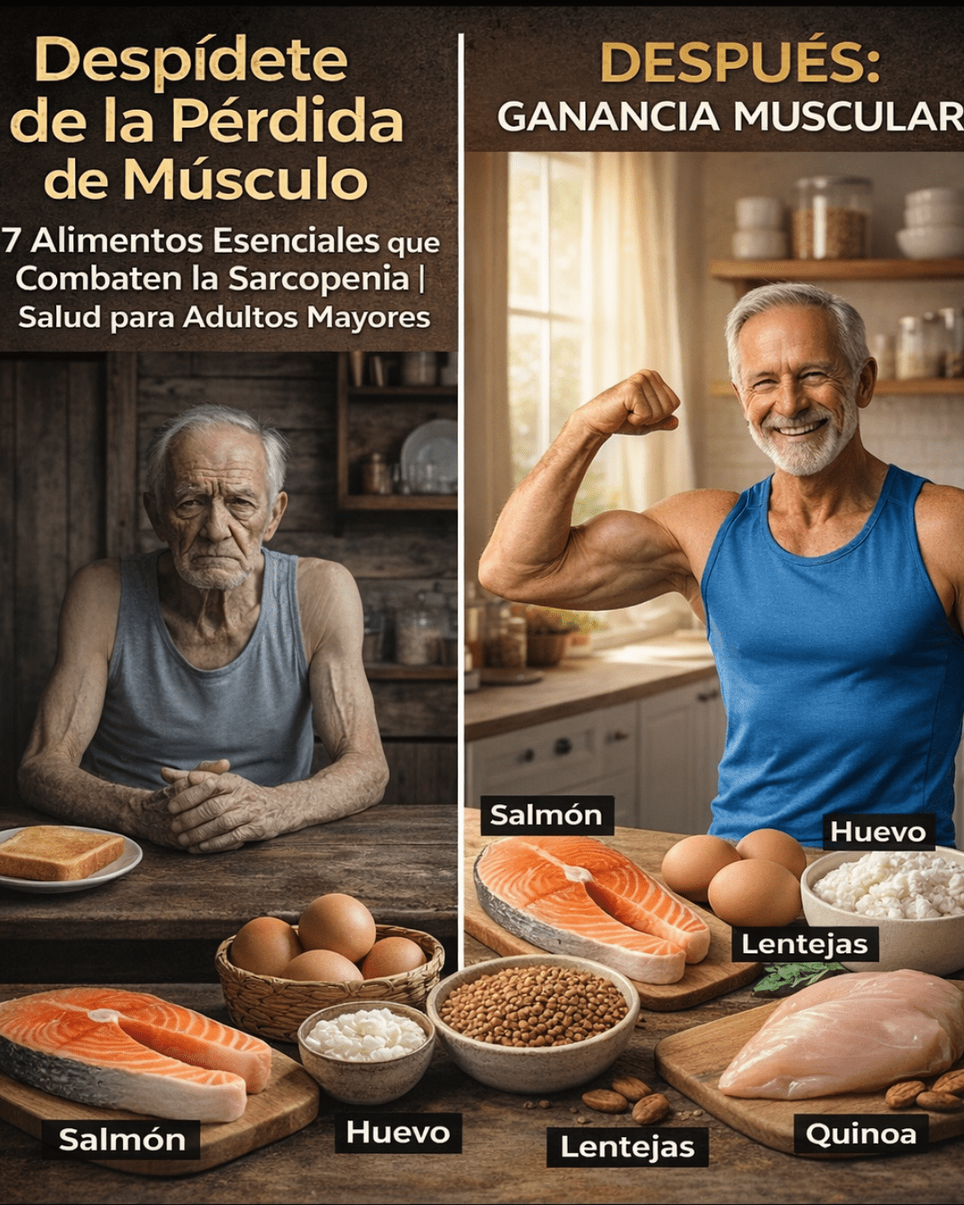 ¿Alguna vez has sentido que tus piernas tiemblan un poco más al subir escaleras, que cargar las bolsas del supermercado se ha vuelto un esfuerzo mayor o que abrir un frasco requiere más fuerza de la que recuerdas? Esta debilidad creciente no es solo “cosa de la edad”, sino una señal de que tu masa muscular está disminuyendo silenciosamente, afectando tu movilidad y energía diaria. Lo peor es que, si no actúas, esta fragilidad puede robarte independencia, aumentando el riesgo de caídas y haciendo que las actividades simples se sientan agotadoras. Pero aquí viene la buena noticia: lo que comes todos los días puede ser tu aliado más poderoso para revertir esto y recuperar esa vitalidad que extrañas. ¿Estás listo para descubrir esos alimentos que actúan como ladrillos naturales para reconstruir tu fuerza… y por qué uno de ellos podría sorprenderte por completo al final?