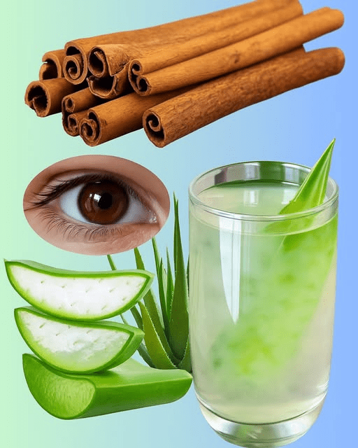 ¡La Visión: Un Tesoro que Debemos Proteger a Toda Costa! 👀 La segunda gran promesa de esta receta es la prevención de la pérdida de visión. ¿Cómo actúan estos ingredientes para blindar nuestros ojos? ¡Especial! El gel de Aloe Vera es rico en luteína y zeaxantina, dos carotenoides cruciales que se depositan en la mácula (la parte central de la retina) y actúan como “filtros solares” naturales, protegiendo contra el daño de la luz azul y el estrés oxidativo, principales causantes de la degeneración macular y las cataratas. ¡Defensa Total! La canela, gracias a sus propiedades circulatorias y antiinflamatorias, puede mejorar el flujo sanguíneo a los ojos, asegurando que reciban los nutrientes y el oxígeno necesarios para funcionar óptimamente, lo cual es vital para prevenir enfermedades oculares relacionadas con la edad y la diabetes. ¡Nutrición Pura! Juntos, ofrecen un arsenal de vitaminas (A, C, E) y minerales esenciales para el mantenimiento de los tejidos oculares y la prevención del deterioro del nervio óptico.