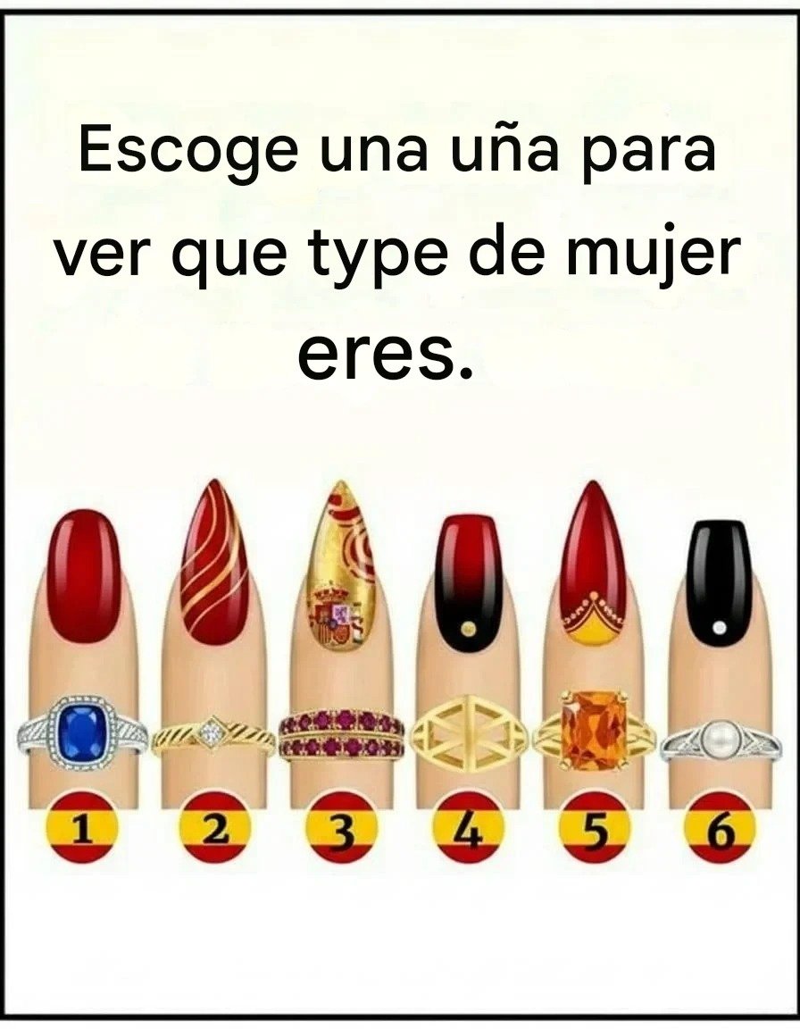 Observa la imagen de seis formas de uñas. Cada una tiene una forma diferente: desde más redondeada, almendrada, cuadrada o ligeramente puntiaguda. Elige la que más te guste y descubre qué rasgos de personalidad podría reflejar tu elección. Recuerda, este test es solo por diversión y para ayudarte a definir tus preferencias.